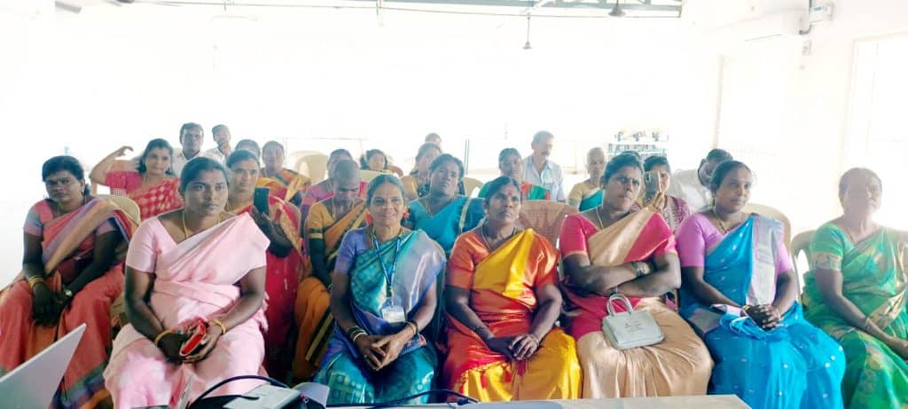 To strengthen the local government, a district level training was organised in Krishnagiri on 11 February 2023. 34 participants; 23 women, 11 men (9 panchayat presidents, 13 ward members and 12 civil society organizations) from 4 districts Krishnagiri, Tirupattur, Coimbatore and Dharmapuri participated.
