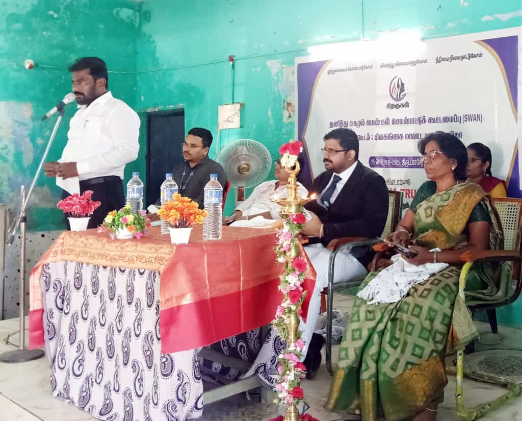 The inaugural of the Single Women Action Network (SWAN): Arankoodam was held in Sivagangai on 25 September 2025. It laid the foundation for a space for single women to celebrate their freedom by strengthening their economic independence, security, self-integration and removing the stigma that exists in society.