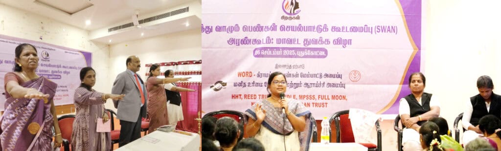 The inaugural of the Single Women Action Network (SWAN): Arankoodam was held in Pudukkottai on 26 September 2025. It laid the foundation for a space for single women to celebrate their freedom by strengthening their economic independence, security, self-integration and removing the stigma that exists in society.