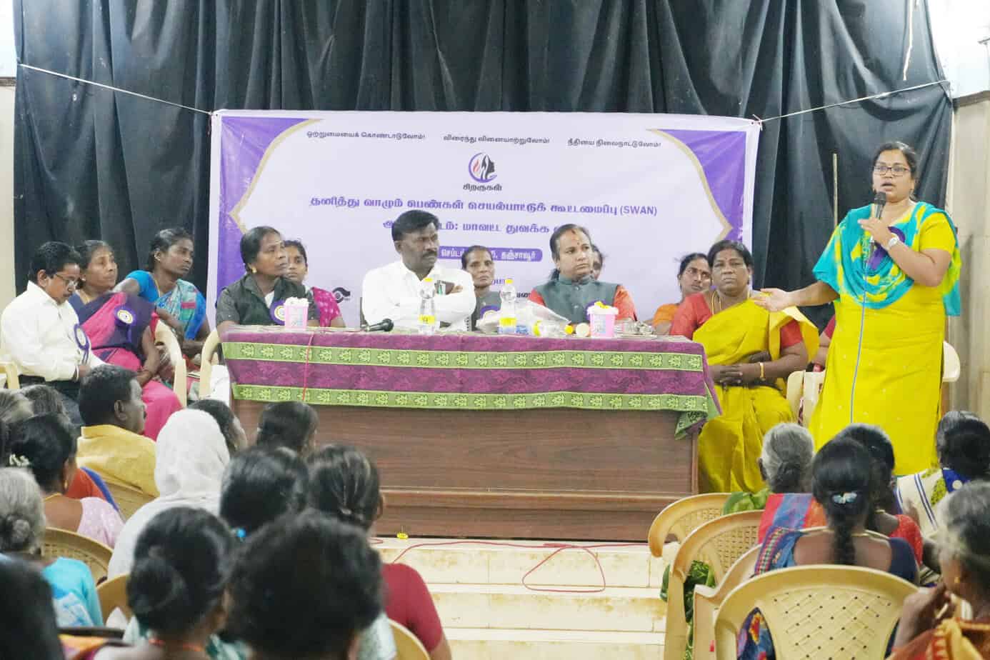 The inaugural of the Single Women Action Network (SWAN): Arankoodam was held in Thanjavur on 27 September 2025. It laid the foundation for a space for single women to celebrate their freedom by strengthening their economic independence, security, self-integration and removing the stigma that exists in society.
