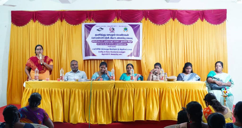 The inaugural of the Single Women Action Network (SWAN): Arankoodam was held in Pattukkotai, Thanjavur on 29 September 2025. It laid the foundation for a space for single women to celebrate their freedom by strengthening their economic independence, security, self-integration and removing the stigma that exists in society.