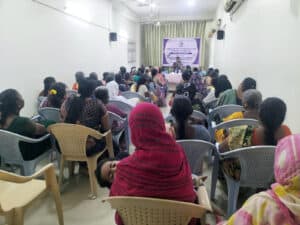 To support the ongoing awareness and solidarity forum, pamphlets covering the PWDV Act, Dowry Prohibition Act, POSH Act, POCSO Act, POA Act, the Street Vendors Act and Swan Single women helpline were distributed to all participants.